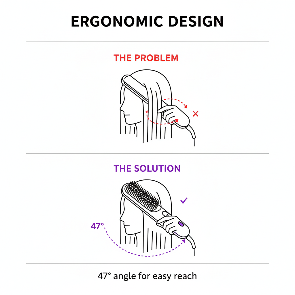 - 47° ergonomic angle — naturally reaches your nape without wrist-breaking angles
